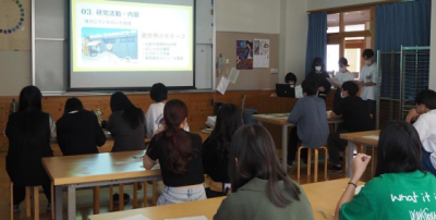 この日は前期期末考査最終日、課題研究の中間発表が実施されました。 おもちゃの製作、ピック作成、ヒノキのアロマキャンドル、インテリア科・藪原スキー教室ホーム ページ、空間の有効活用、日義の百年以上続く伝統を残したい! 日義こども園交流、地域観光パン フレット制作、リノベーション計画に関わる空き家活用、デザイン研究、以上 10 本の発表がありました。