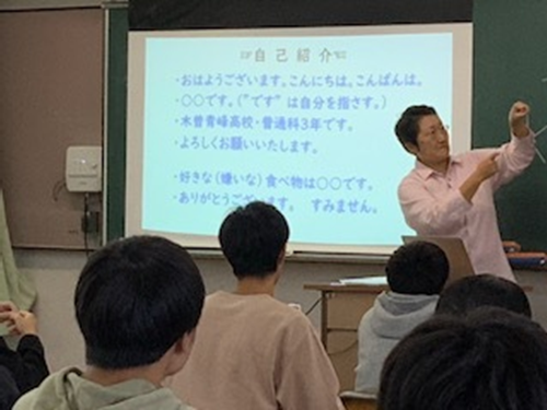 手話講座 2024 10/22 青峰NOW! 2024年10月22日 10月10日(木)、18日(金)に3学年で行いました。聴覚障がい者の当事者、上嶋さん、伊藤さんが講師でした。災害が起きた時には、耳が聞こえない人を助けて欲しいとお話してくれました。生徒たちは話に聞き入っていました。ありがとうございました! 青峰NOW! 秋季クラスマッチ 2校交流会(蘇南・木曽青峰高校)