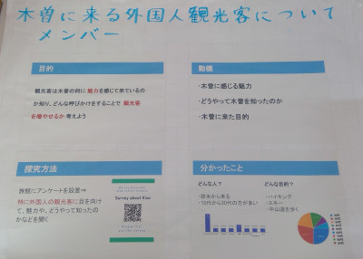 校内の先生や木曽で働く社会人の方々にもお越しいただきながら、各班のまとめや今後おこなってみたいことを発表しました。
