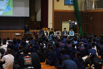 早くも夏を思わせるような気候の中、1年生が参加する初めての生徒総会が実施されました。