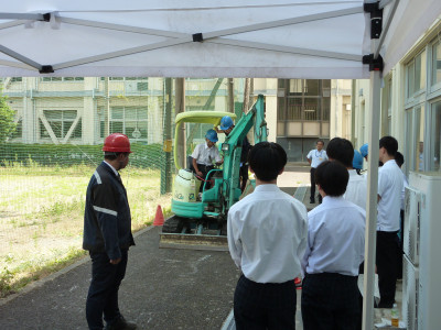 利用している機械の実演や説明、クレーンの操作体験が行われました。