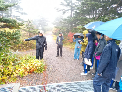 あいにくの雨降りではありましたが、シラビソやコメツガなどの亜高山帯の植生について体験的に学ぶことができました。