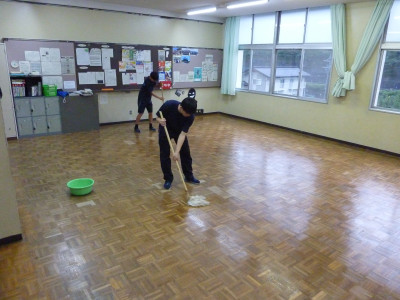机等をすべて運び出し、ワックスをかけることで、教室をピカピカにすることができました。