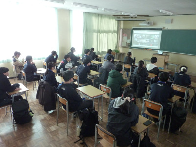 生徒指導講話では生徒指導主事の先生より、冬期休業の過ごし方の注意点についてお話がありました。