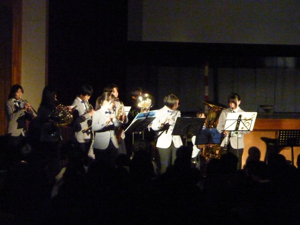 クイズ大会や各部活動からの先輩へのメッセージ動画、吹奏楽部の演奏が行われました。