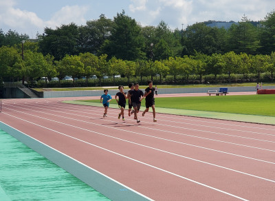 長期休業には週に1回ほど学校ではなく競技場で練習を行っています。 今日は中津川公園競技場にて競技場練習を行いました。 技術練習やスピード練習など、普段の土のグラウンドよりも質の高い練習ができました。 -