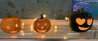 モロッコ系オランダ人 Lina Melhaoui さんが 王滝村の方2人と1年生の英語の授業に来てくれました! 生徒と一緒にカボチャをカットしました。 1時間で素敵なかぼちゃのランタンができました。 -
