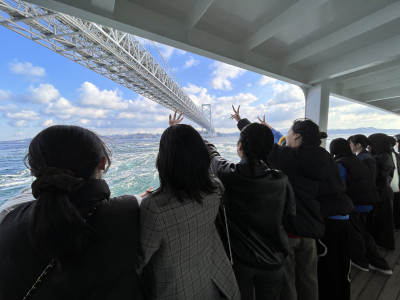 〜修学旅行2日目 Vol.1〜 修学旅行2日目に突入〜本日の最初は、うずしお観潮船「わんだーなると」に乗船し大鳴門橋付近へうずしおを見に行きました! 写真:「わんだーなると」から見る大鳴門橋、渦潮 天候に恵まれ、うずしおを見ることができました!... -